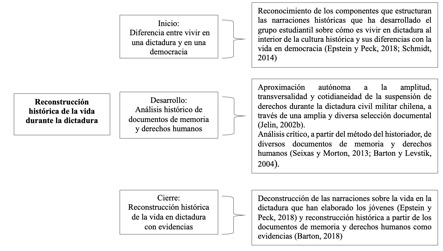 [4] El modelo didáctico fue desarrollado en el marco de la unidad 3 del programa de estudios, llamada Dictadura militar, transición política y los desafíos de la democracia en Chile.